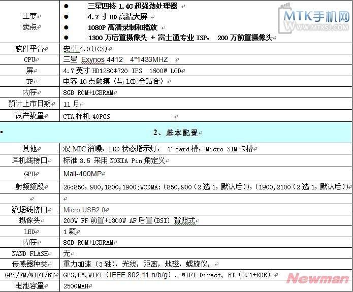 According to these reports, the Newman N2 will come equipped with a Samsung Exynos 4412 quad-core 1.5GHZ CPU, the same chip running the current Meizu MX 4-core and Samsung Galaxy S3, and will also feature a 400Mhz GPU, 1GB RAM and 8GB ROM.