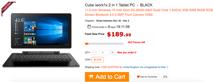 Cube iwork1x is a 2 in 1 tablet PC device, equipped with a 11.6 inch IPS display that supports for 1920 x 1080 pixels. Besides, it is powered by new generation Intel Atom X5-Z8350 64 bit and Gen 8 Intel HD graphics, coupled with 4GB of RAM.